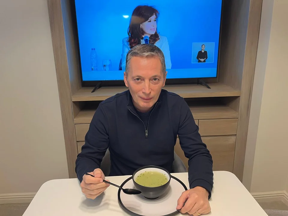 A través de “X”, Gray publicó "Otra vez sopa!!!”, acompañando el texto con una foto suya tomando un caldo y dándole la espalda al televisor que mostraba a la exmandataria.
