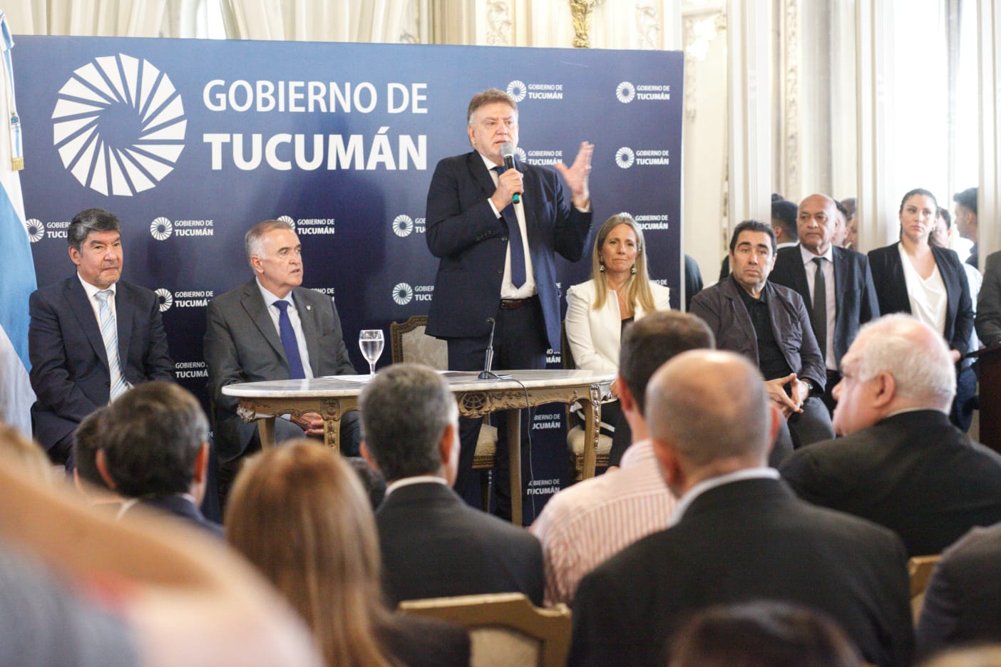 El mandatario tucumano fue acompañado por vicegobernador Miguel Acevedo y el presidente subrogante de la Legislatura, Sergio Mansilla; los ministros: Santiago Yanotti de Obras Públicas, Daniel Abad de Economía, Luis Medina Ruiz de Salud, Regino Amado de Gobierno y Justicia, Federico Masso de Desarrollo Social, Susana Montaldo de Educación, la fiscal de Estado Gilda Pedicone de Vals y el secretario general de la Gobernación, Federico Nazur.