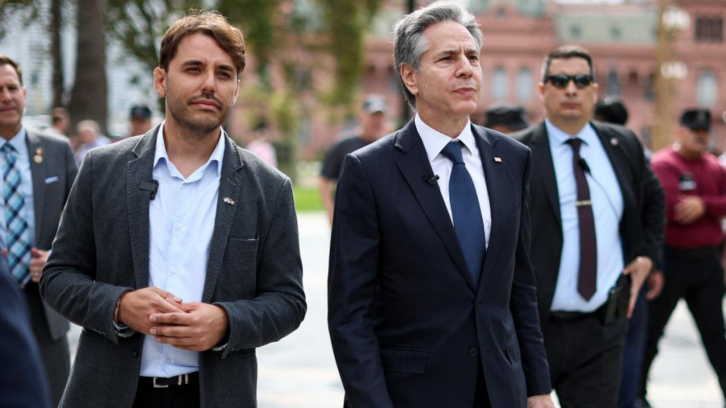 En una declaración que ofreció junto a la canciller Diana Mondino, Blinken dijo estar agradecido por "el tiempo del Presidente y las profundidad de nuestra conversación, que refleja el interés por profundizar y fortalecer los lazos entre nuestros países".