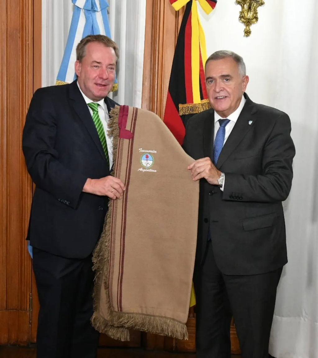 En un encuentro protocolar que tuvo lugar este martes en Casa de Gobierno, el gobernador, Osvaldo Jaldo, recibió al embajador de la República Federal de Alemania en Argentina, Dieter Lamlé, que arribó a la provincia para recorrer el suelo tucumano y mantener diversos encuentros.