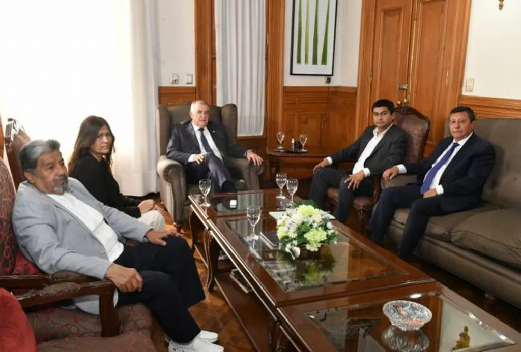 El gobernador Osvaldo Jaldo mantuvo esta mañana una reunión de trabajo con el ministro del Interior, Dario Monteros, el legislador Leopoldo Rodríguez, el intendente de La Cocha a cargo del municipio Brígido Humberto Díaz y Gabriela Susana Rodríguez.