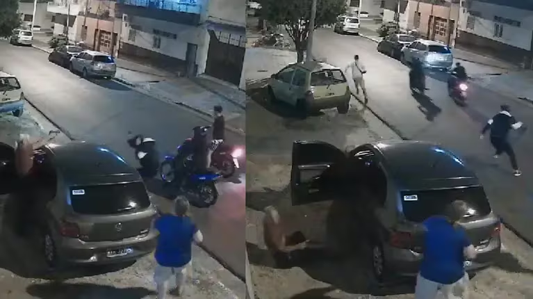 La policía estacionó su vehículo sobre la vereda frente a la vivienda y cuando estaba por bajar fue abordada por dos de las personas que llegaron en las motos, que se bajaron aparentemente con intención de robarle el automóvil.