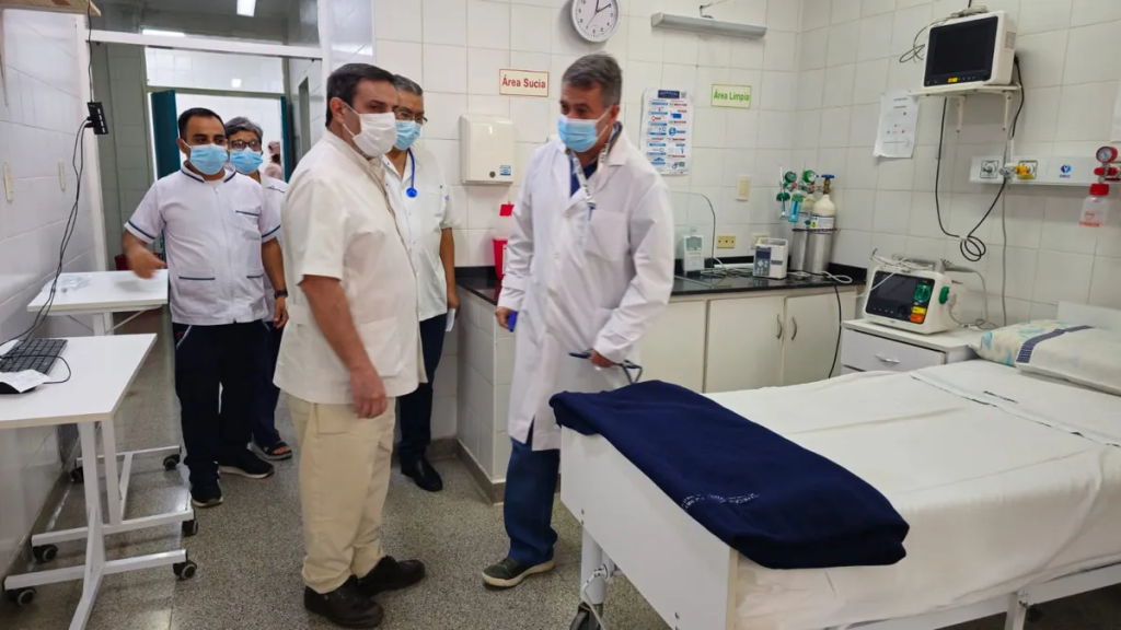 Al respecto de la visita del funcionario, el director de la institución, doctor Rodolfo Cencanti, dijo: “En este viernes Santo, recibimos la visita del ministro de Salud, doctor Luis Medina Ruíz, en horas de la mañana, quien bueno recorrió la institución e interactuó con todo nuestro personal, y los pacientes que estaban en sala de espera, y los que estaban en consultorio de triage, los que estaban en guardia, y en observación y también. Nuestro hospital es un hospital de segundo nivel, donde tenemos una sala de espera refrigerada, un triage y pre-triage, y un consultorio donde se hace la primera admisión del paciente. Estamos trabajando con agentes sociosanitarios, quienes colocan citronela, y dan pautas de seguridad, además de colaborar también con el triage. Se le entrega a cada uno de nuestros pacientes la medicación, y se le indican pautas de alarmas y controles. Contamos además, dentro de la guardia, con un showroom compuesto por camas de alta y baja complejidad, camas de observación, con monitor multiparamétricos, e incluso un respirador, y de sillones de rehidratación para atención urgente”.