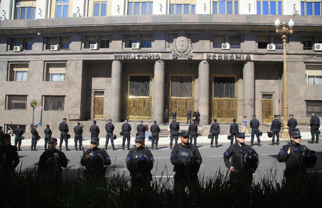 Las inmediaciones de la Casa Rosada fueron militarizadas para impedir que los afiliados de ATE corten las calles de la zona en el marco del paro nacional en repudio a los despidos de trabajadores estatales, razón por la cual se produjeron algunos forcejos entre los uniformados y los manifestantes.