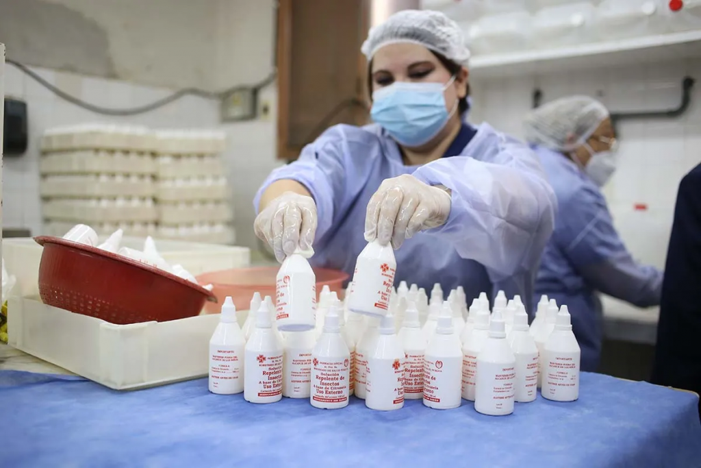 La Farmacia Oficial realiza la elaboración de repelentes y otros medicamentos y que son entregados de manera gratuita en los centros asistenciales.