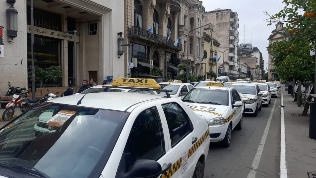 El tránsito se torna complicado en el microcentro tucumano a raíz de la protesta de los taxistas.