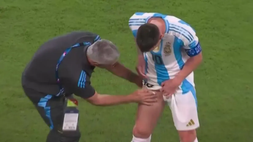 Se jugaban 24 minutos del primer tiempo, cuando la Pulga se dio cuenta que algo no andaba bien, levantó la cabeza, miró hacia el banco de suplentes y le hizo señas al cuerpo técnico. Rápidamente lo atendieron: primero le aplicaron frío y después lo masajearon del otro lado de la línea de cal.