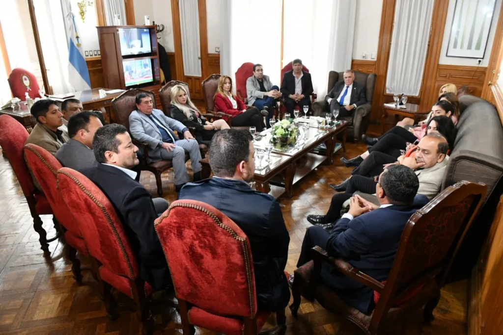 En la reunión estuvieron presentes el presidente subrogante de la Legislatura, Sergio Mansilla; el vicepresidente primero de esa cámara, Aldo Salomón, y el ministro de Interior, Darío Monteros.