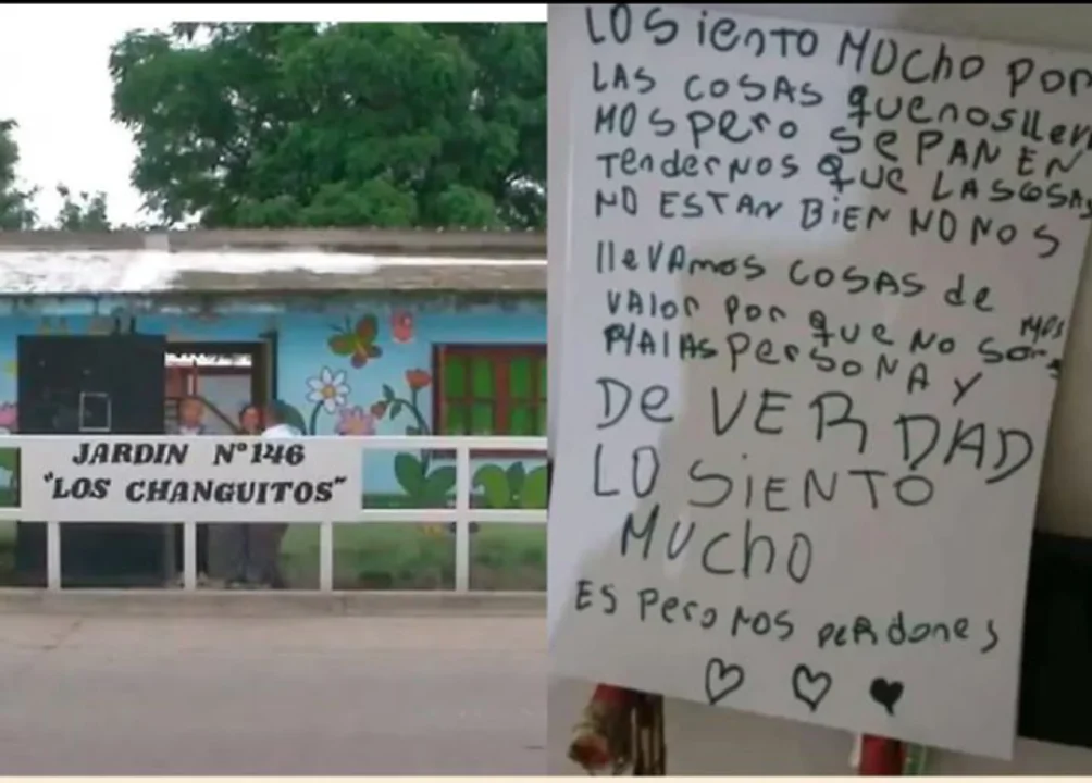 Una banda de delincuentes que robó en un jardín de infantes en Santiago del Estero le dejaron una insólita carta a los directivos de la escuela pidiéndoles perdón por el hecho.