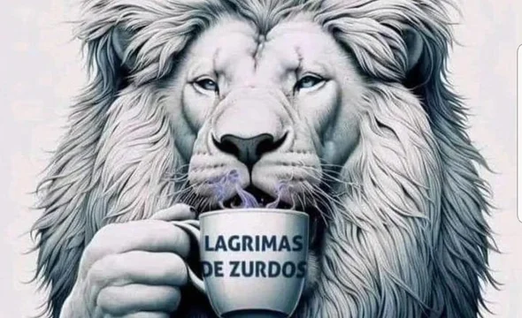 Además, el presidente ilustró su comentario con la foto de un león, sosteniendo una taza con la leyenda: "Lágrimas de zurdos".